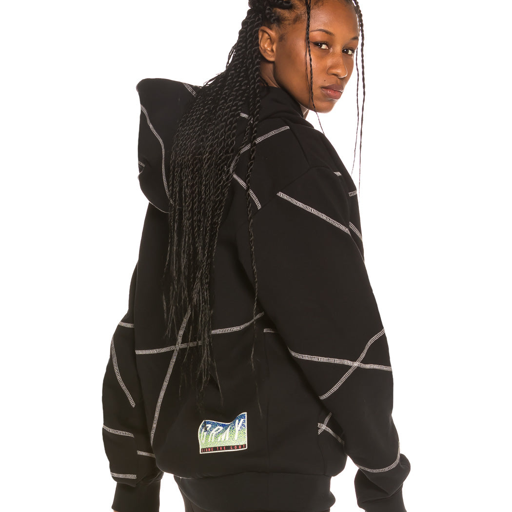 Unisex Sweatshirt Grimey Planete Noire Overlok Hoodie FW19 Schwarz